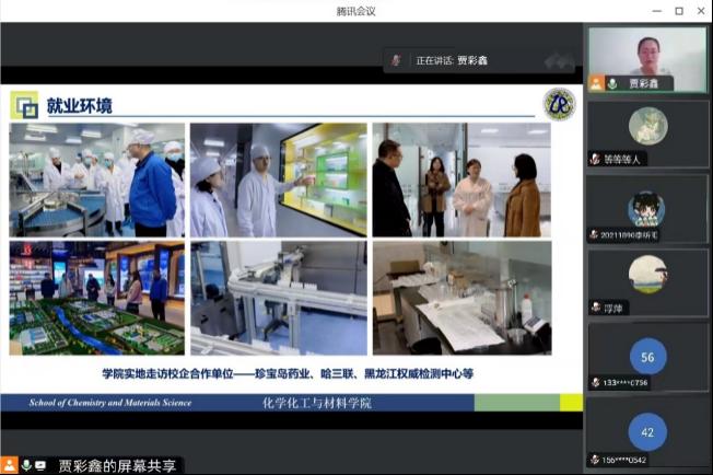 接下来,贾彩鑫老师结合学院就业情况、就业形势与政策、就业环境与优势三个方面展开讲述。她指出,目前企业对于化学学科毕业生仍然需求量大、设置岗位多,但仍存在部分员工慢就业、缓就业、不就业等情况,这里需要家长了解员工情况,积极引导员工选择合适的方向发展,充分利用好高校学院的就业信息资源,认真梳理信息,珍惜时间,抓住机遇。
