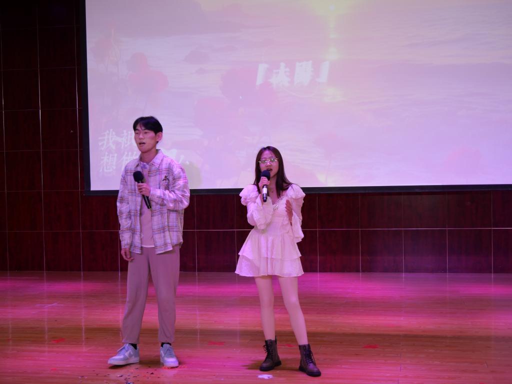 接下来,卢思锋,王嘉琪同学为我们带来歌曲《太阳》,生活似一幅多彩画卷,有风雨的灰暗,有迷雾的迷茫,亦有阳光的灿烂。阳光,是大自然慷慨的馈赠,它如同一束希望之光,温暖心灵。