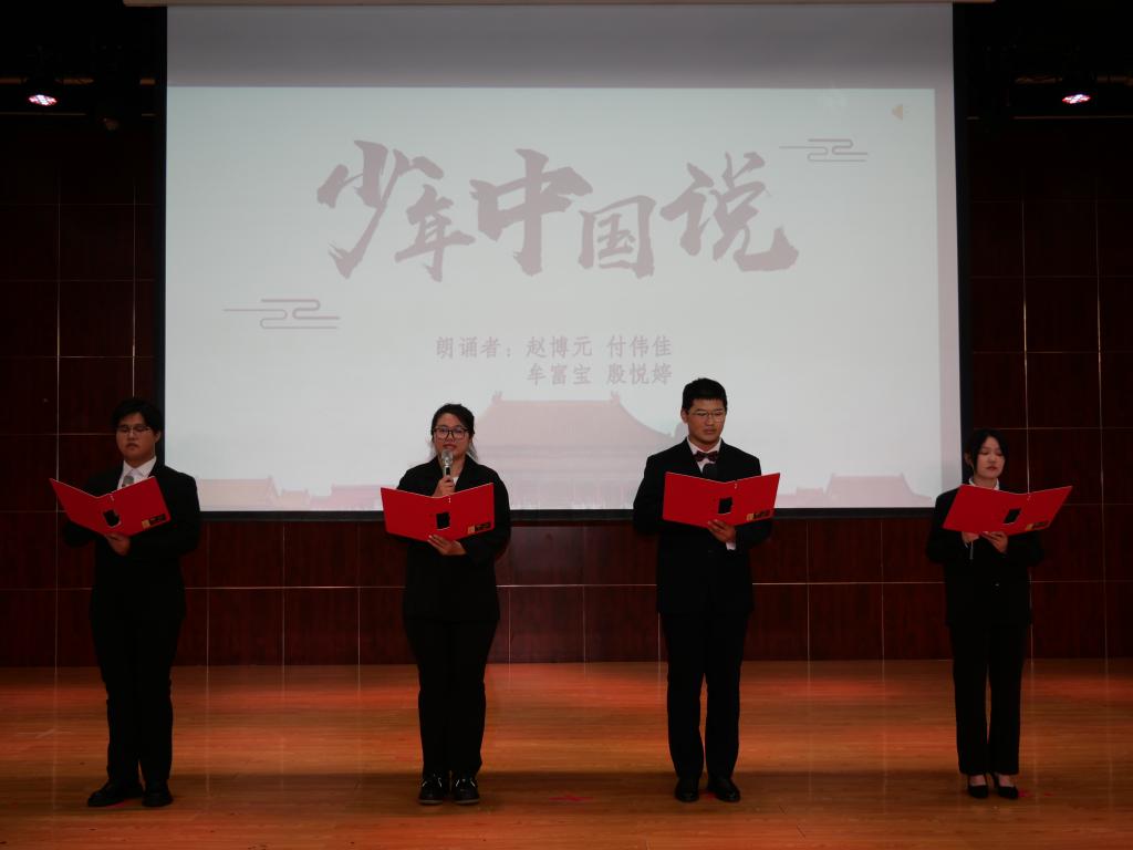 自古英雄出少年,今日之责任,不在他人,而全在我少年。由赵博元,付伟佳,牟富宝,殷悦婷带来的朗诵《少年中国说》,铿锵有力的话语展示出身为新时代的青年担当。