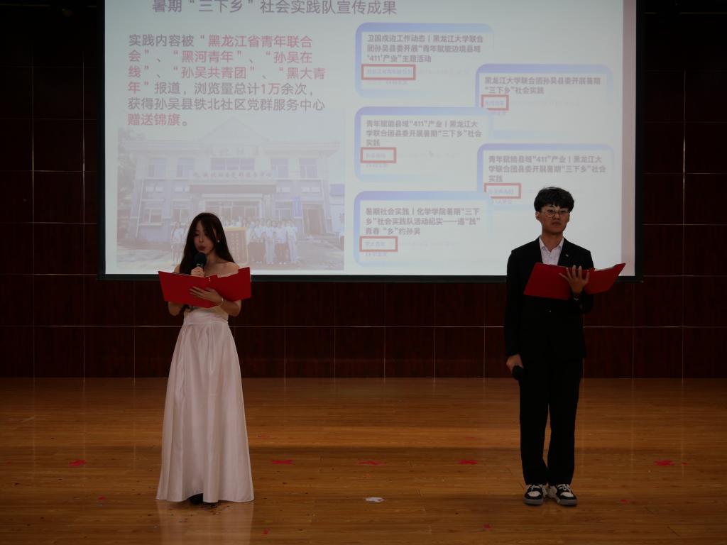 “三下乡”社会实践队代表王龙,王雨欣来带领大家回顾三下乡的美好时光,他们带着知识和热情,走进乡村、深入基层,为广大群众送去了科技的力量和文化的滋养,他们以实际行动诠释了新时代青年的责任与担当,践行着“志在心中,愿在行动,尽绵薄之力,不留遗憾”的誓言,以星火之名,燃青春之光。