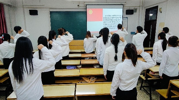 首先宋佳潼宣读了新团员名单,并对新团员表达了诚挚的祝贺和美好的祝愿。随后,她宣读了《中国共产主义青年团章程》中有关团员义务和权利的规定,强调各位新团员要树立崇高的理想信念,努力成为一名合格的团员,并为团员们发放了团员证、团徽及团章。紧接着,在她的带领下,新团员们面向团旗庄严宣誓。宣誓仪式庄重而神圣,新团员们不仅接受了精神的熏陶和洗礼,而且更加牢固地树立了听党话、跟党走的决心,彰显出新时代青年的使命与风采。