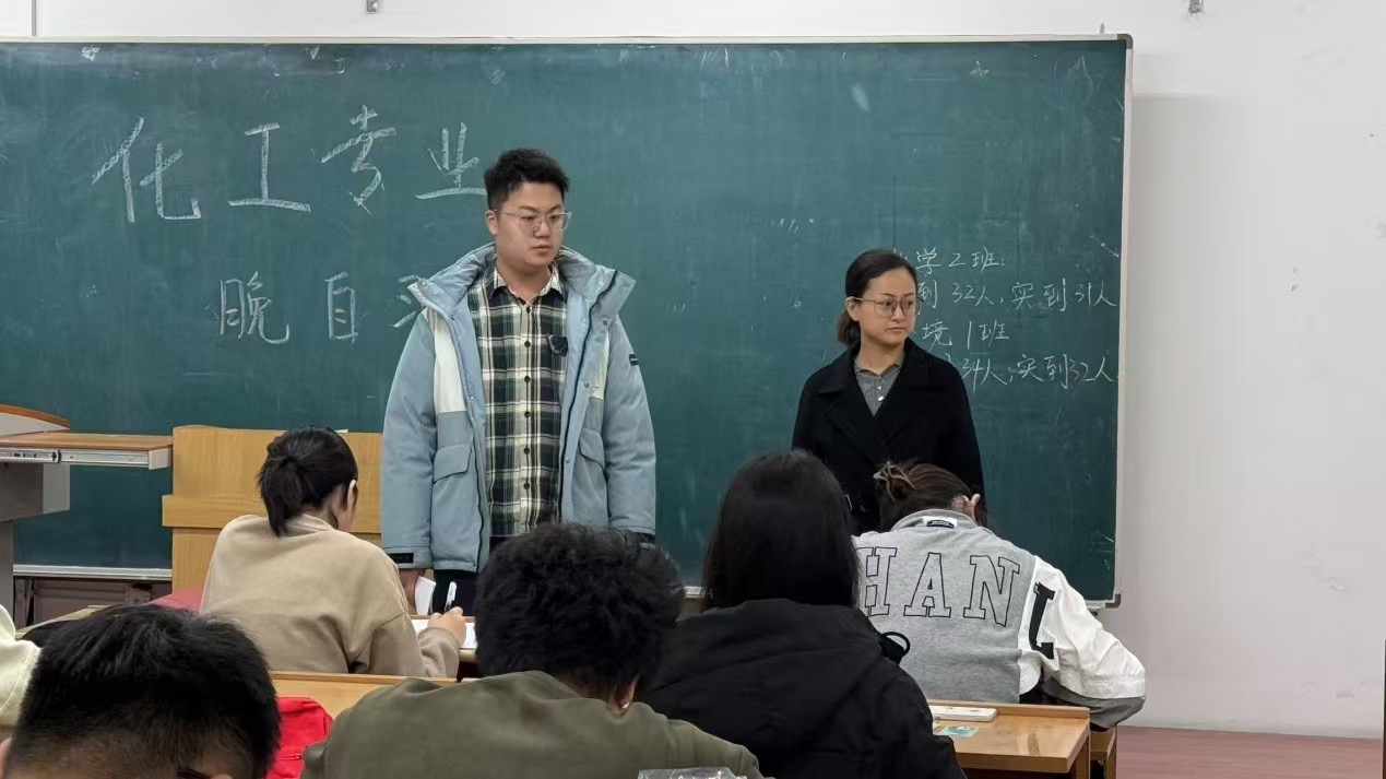 学习号角嘹亮,黑大学意正浓。为进一步强化学院学风学纪,推进优良学风建设,营造浓厚学习氛围。2024年11月1日晚18:30,公司党委副书记贾彩鑫、2024级辅导员贺俊杰对新生晚自习进行了走访。