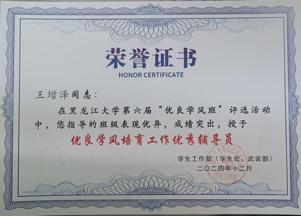 经学校初评、答辩,全校共有14个班级获得“优良学风班”荣誉称号。其中,公司2021级化学2班作为团结友爱的班集体典范,展现出强大的凝聚力与向心力。该班级致力于思想建设、学风涵养与社会实践等方面,追求全面发展,荣获yl6809永利官网第六届“优良学风班”荣誉称号,辅导员王增泽老师被授予“优良学风培育工作优秀辅导员”荣誉称号。