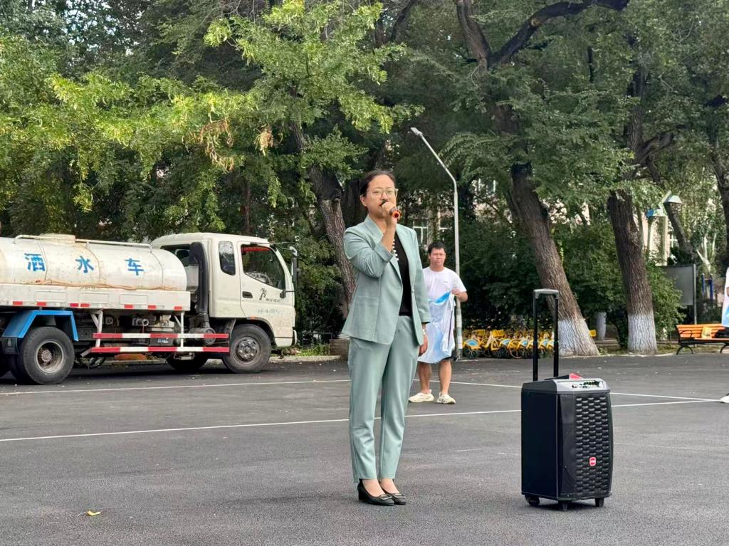 首先,贾彩鑫书记作动员讲话,为同学们阐释了军事教育的深层意义,并对全体参训同学提出三项要求。第一,要心系国家发展大局,凭借信念树立远大志向,培养“一切行动听指挥”的组织纪律观念;第二,要勇于拼搏、积极奋进,以刚正不屈的骨气安身立命,养成良好的学习与生活习惯;第三,要敢于突破、大胆创新,依靠扎实的能力筑牢根基,锤炼兼具真、善、美、强的意志品格。此外,她希望同学们能在军训中读懂“坚持”的意义,在烈日下打磨意志,在队列中学会协作;能在迷彩服的映衬下,感悟军人的责任与担当,把“令行禁止、雷厉风行”的作风融入未来的学习与生活。