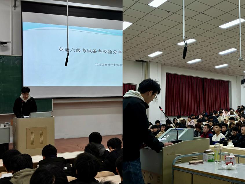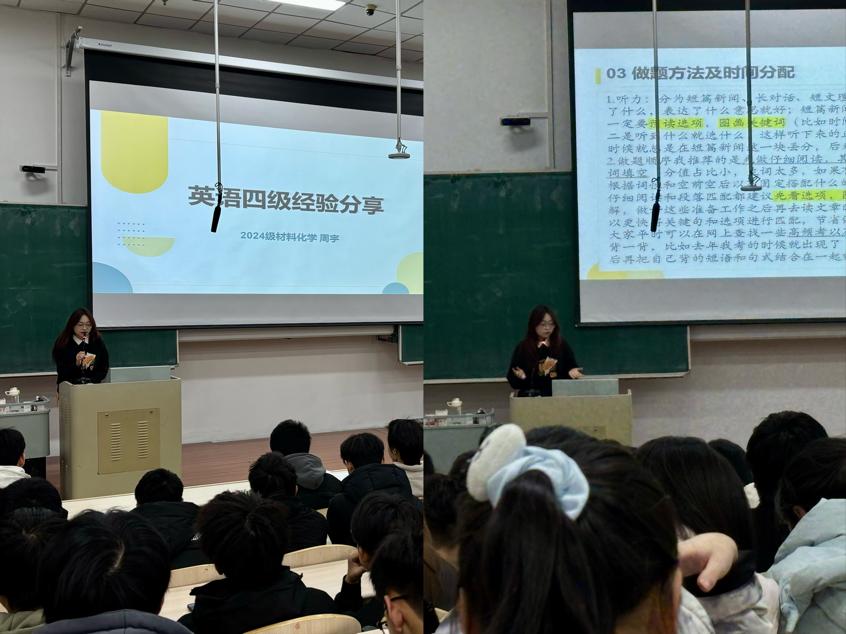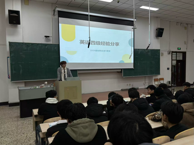交流会上,2024级材料化学专业周宇同学结合四级备考实战经验,聚焦考试各题型得分关键,拆解不同模块备考优先级,重点讲解阅读定位技巧、写作结构搭建、翻译句式优化等高频考点,还分享错题整理方法与每日备考时间表,鼓励同学们制定个性化计划,高效利用备考时间。