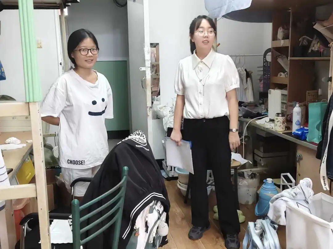 在走访过程中,学院领导老师与新生进行亲切交流,详细询问新生住宿、饮食习惯及适应情况,并送上暖心问候。面对新同学们在生活以及学习方面的疑问进行一一解答,并强调同学们要增强安全意识,养成良好的卫生习惯和集体意识,共筑文明卫生的温馨寝室。