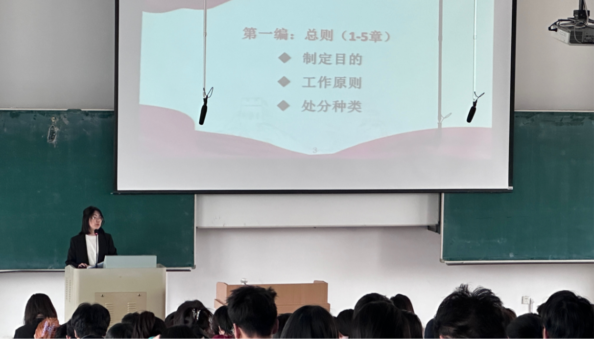 在知识讲座环节,张晓密解读了新版《中国共产党纪律处分条例》的基本构成以及基本内容,并重点围绕《条例》中政治纪律、组织纪律、廉洁纪律、群众纪律、工作纪律、生活纪律六个方面各类违纪行为和处分规定逐一阐述,最后要求同学们要明确政治方向立场,做到清正廉洁,注重建设个人品德、不断加强自我改造、自我约束、自我提升的能力。