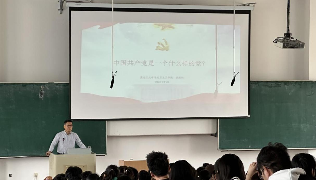在集中授课环节,由马克思主义学院侯宪利副教授、马克思主义学院韩忠全副教授担任主讲教师。侯宪利以《中国共产党是一个什么样的党?》为题,结合百年党史深刻理解党的宗旨信念,不断增强“四个意识”、坚定“四个自信”、做到“两个维护”,号召同学们要坚定马克思主义的信仰,胸怀理想信念为此坚持不懈奋斗,脚踏实地,在实践中释放青春激情,逐梦青春理想,以青春之我,奋斗之我,为民族复兴铺路架桥,为实现中华民族伟大复兴的中国梦贡献青春力量。