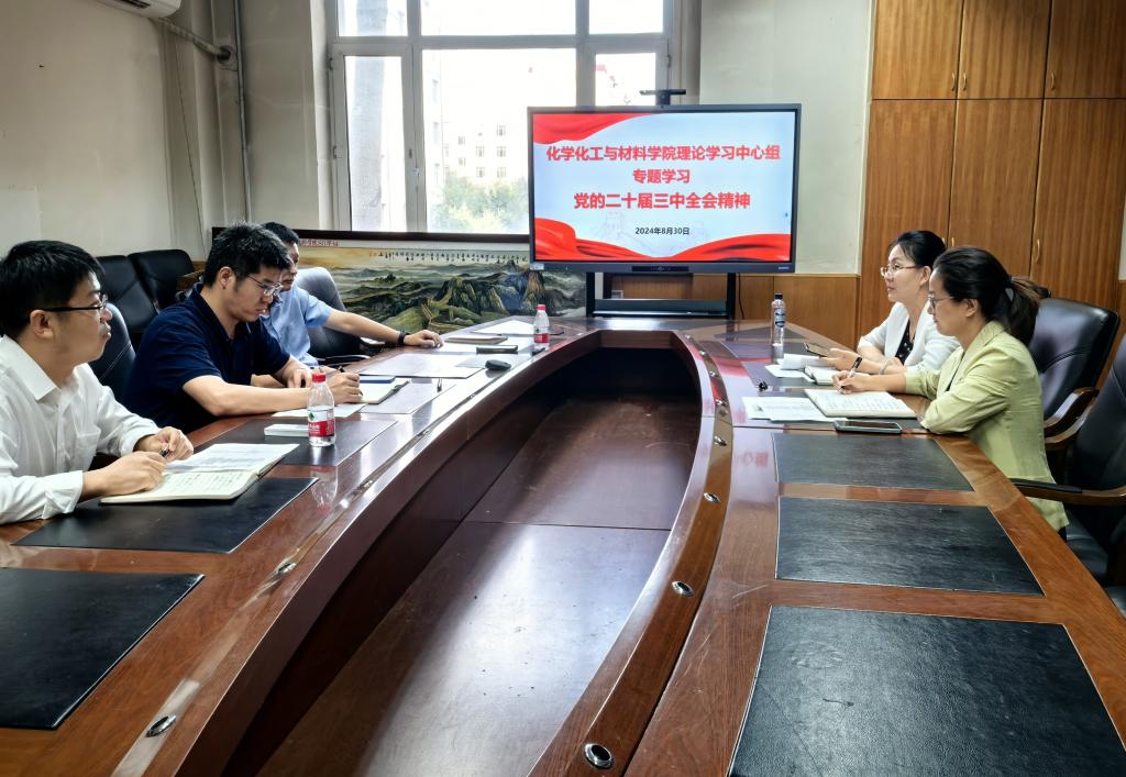8月30日,公司党委理论学习中心组学习会在化学楼241会议室召开,专题学习党的二十届三中全会精神。学院理论学习中心组全体成员参加会议,会议由公司党委书记秦川丽主持。