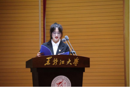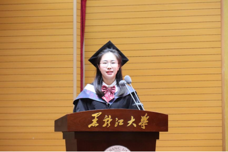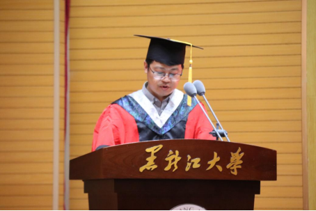 毕业生代表、2018级环境科学专业潘俊彦代表全体毕业生发言。她深切表达了对学院领导、老师的感激和对朋友、同学的不舍,并表示在黑大化学院学到了为人为学要横平竖直,坚定了真善美强的理想信念,将用一生去诠释“博学慎思、参天尽物”的真理。在校生代表、2020级化学专业姚琪代表全体在校生对学长学姐们顺利毕业表达了衷心的祝贺,并对他们耐心的帮助和指导表示感激。同时表示在校的化院学子一定不会辜负学长学姐们美好期望和春风般的关怀,继续传承“志远行实,学而不厌”的学风,刻苦专研,为学院发展添光添彩。