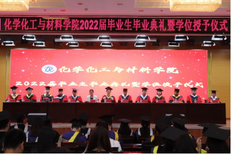 惜别母校真情绻,续写青春奋进篇。永利3044noc于6月1日14:00在主楼一楼报告厅举行2022届毕业生毕业典礼暨学位授予仪式。公司党委书记秦川丽、经理许辉、副经理徐英明、化学系副主任陈志敏、材料化学系主任任志宇、应用化学系实验室主任初文毅、高分子材料与工程系主任牛海军、化学工程与工艺系主任肖林飞、环境科学系主任朱琦、制药工程系主任孙少平、分析测试中心副主任吴杰、基础实验中心教师苗守雷、全体辅导员及学院2022届本硕博毕业生出席毕业典礼,公司党委副书记贾彩鑫主持毕业典礼。