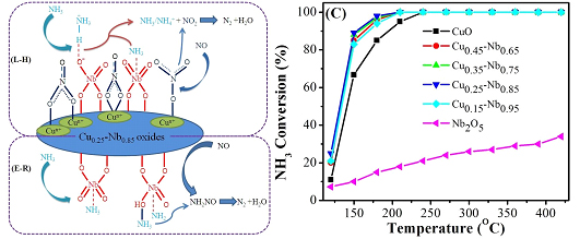 Scheme:reaction mechanism and activity of NH3-SCR over Cux-Nb1.1-x