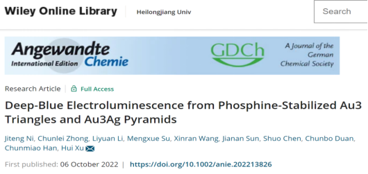 近日,国际顶级期刊《Angewandte Chemie International Edition(德国应用化学)》(中国科学院一区、top期刊,影响因子16.823)在线刊登了永利3044noc本科生项目(化学学科)团队关于“团簇电致发光材料及器件”的最新研究成果。