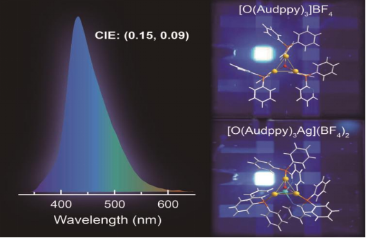 团簇是一类尺寸介于小分子和纳米粒子之间的新型功能材料,已被广泛用于催化、生物、医疗、能源及光电领域。近年来,基于团簇发光材料的电致发光技术成为该领域的前沿研究热点,取得了快速发展。然而,由于团簇复杂的激发态组成和强的分子内相互作用,深蓝光团簇电致发光材料及器件的研发一直是本领域的瓶颈,亟待突破。