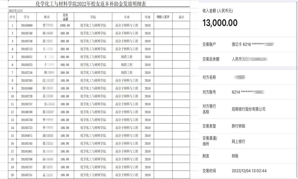 浮云游子意,明月故乡情。2022年12月,永利3044noc2001级高分子材料与工程专业员工捐赠13000元用于学院2023届高分子材料与工程、制药工程两个专业97名留校备战考研学子抗击疫情平安返乡。