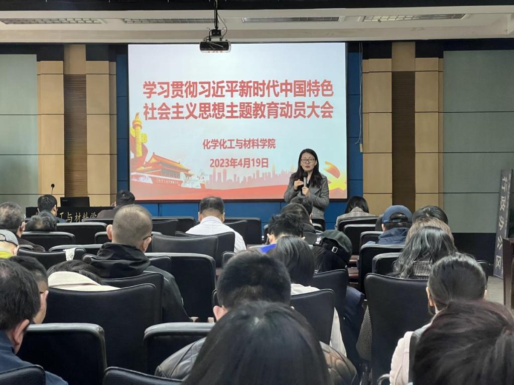 为深入学习贯彻习近平新时代中国特色社会主义思想,全面贯彻党的二十大精神,永利3044noc于2023年4月19日在化学楼二楼大会议室召开学习贯彻习近平新时代中国特色社会主义思想主题教育动员大会,会议由公司党委书记秦川丽主持,全体教职工参加会议。