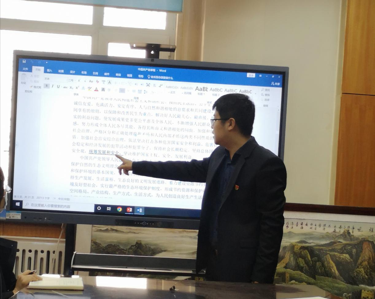 首先,副经理徐英明领学了《中国共产党章程》,重点详细解读了最新版党章的修改之处,他强调要认真学习党章、严格遵守党章是学习贯彻习近平新时代中国特色社会主义思想主题教育的重要内容。随后与会人员集体学习了《习近平新时代中国特色社会主义思想专题摘编》。
