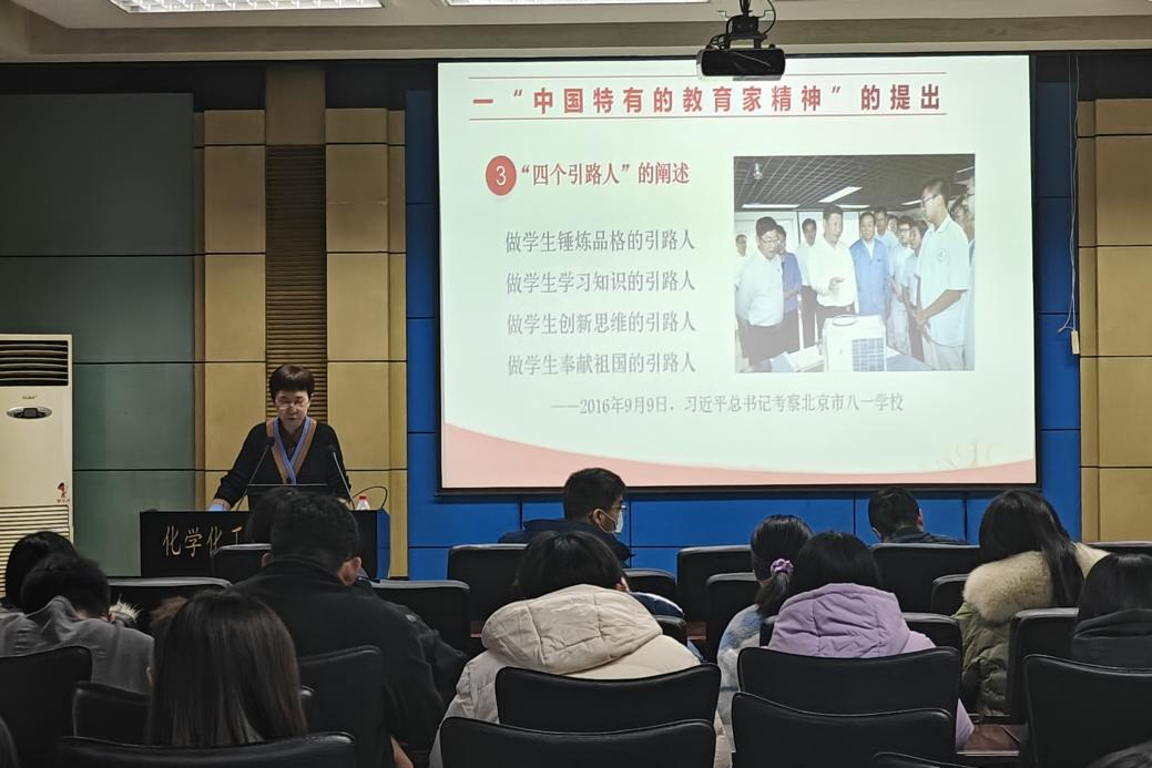 为深入学习贯彻习近平总书记在黑龙江视察和在新时代推动东北振兴座谈会上的重要讲话重要指示精神,深刻领会和把握习近平总书记重要讲话重要指示精神的重大意义、丰富内涵、核心要义和实践要求,12月7日下午,永利3044noc特邀教育科学研究院经理王世红开展“教育家精神和精神专业发展”理论宣讲,会议由公司党委书记秦川丽主持,公司党委副书记贾彩鑫、副经理徐英明、李志斌及全体教职工参会。