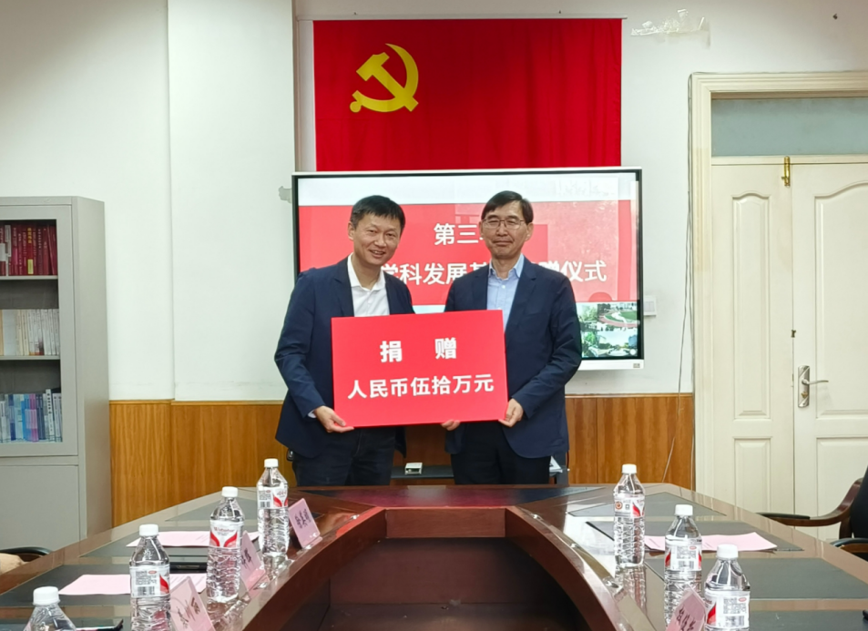 随后,进行化学学科发展基金捐赠仪式,经理许辉为大连宇都环境有限公司董事长权伍哲授牌。这一刻,不仅见证了校企合作的又一里程碑,更凝聚了双方携手并进、共创辉煌的坚定信念与美好愿景。