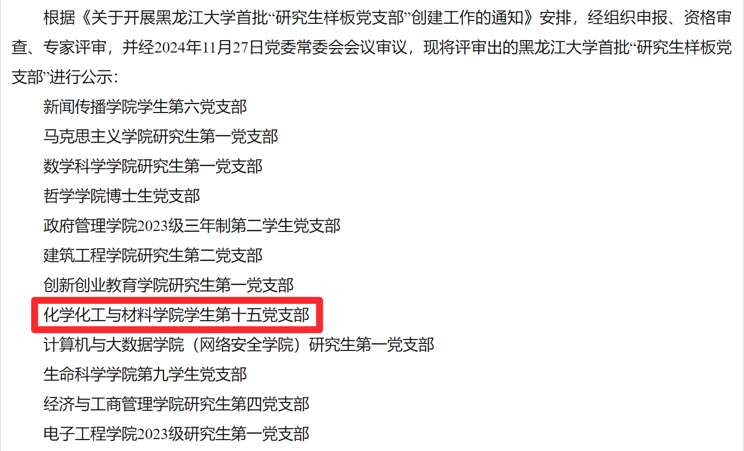 为深入学习贯彻习近平新时代中国特色社会主义思想和党的二十届二中、三中全会精神,全面贯彻习近平总书记关于党的建设的重要思想和视察黑龙江期间重要讲话重要指示精神,贯彻落实《中国共产党普通高等学校基层组织工作条例》,学校组织开展yl6809永利官网首批“研究生样板党支部”创建活动。
