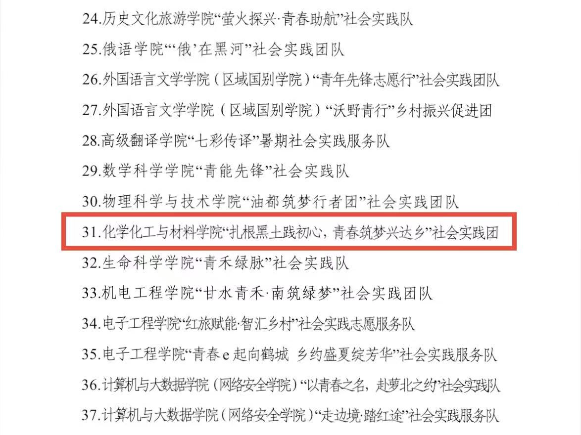 永利3044noc“扎根黑土践初心,青春筑梦兴达乡”社会实践团队荣获2025年yl6809永利官网暑期“三下乡”社会实践优秀社会实践团队荣誉称号。