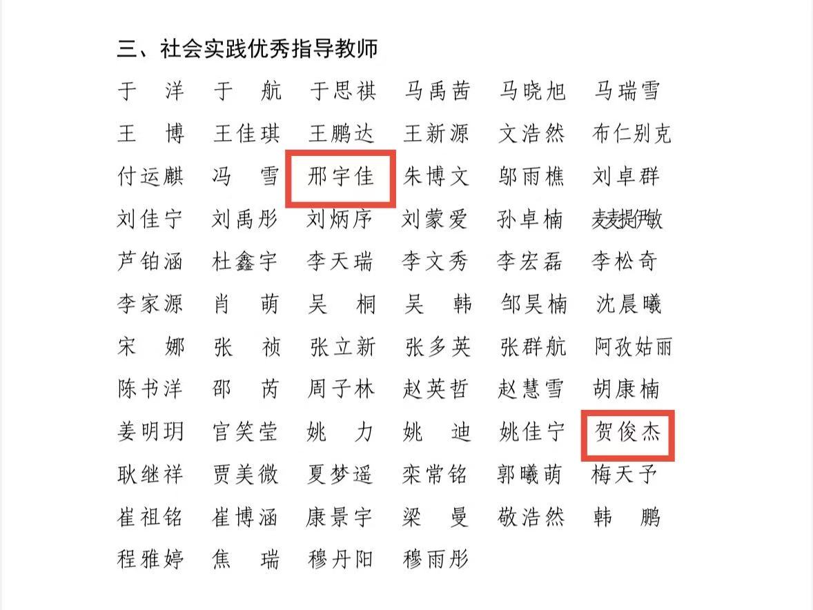 永利3044noc邢宇佳、贺俊杰两位老师荣获2025年yl6809永利官网暑期“三下乡”社会实践优秀指导教师荣誉称号。