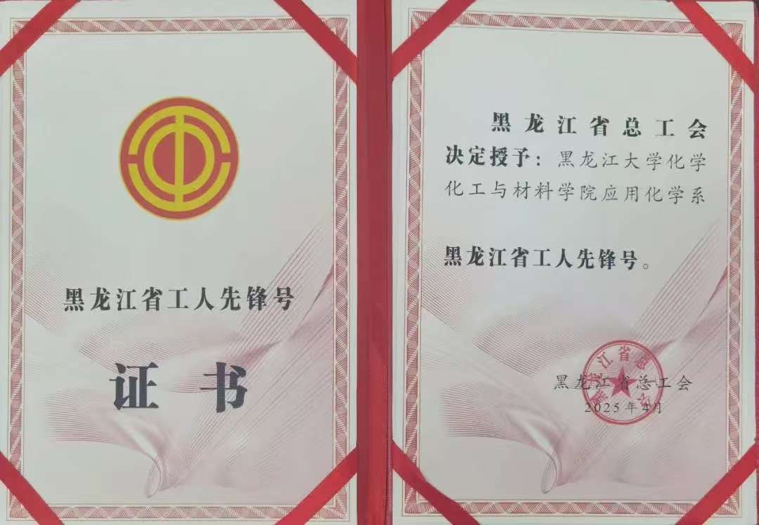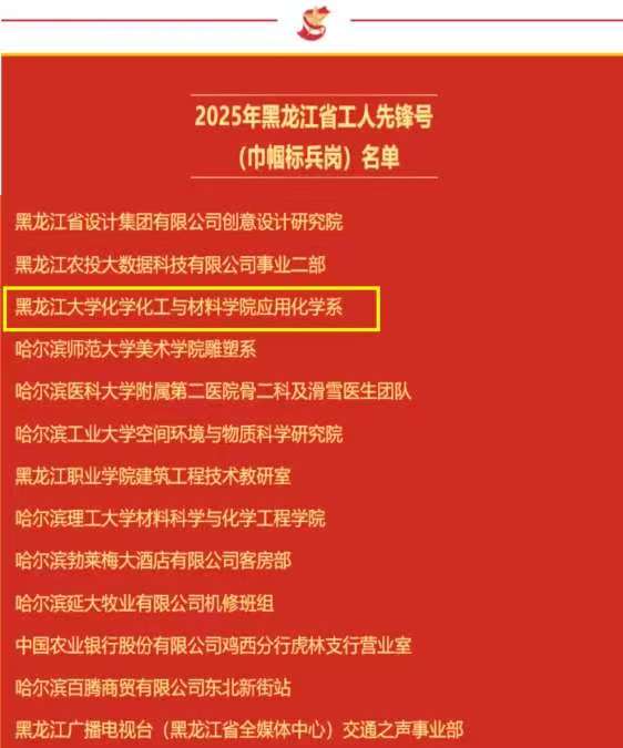近日,黑龙江省总工会发布了《黑龙江省总工会关于表彰2025年黑龙江省五一劳动奖状、奖章(巾帼标兵)和工人先锋号(巾帼标兵岗)的决定》,永利3044noc应用化学系获2025年黑龙江省工人先锋号(巾帼标兵岗)殊荣。