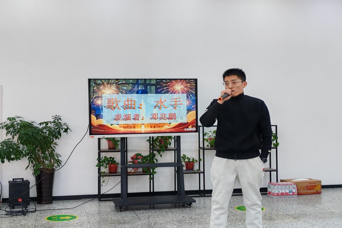 活动开篇由学院教师邓兆鹏倾情献唱歌曲《水手》,激昂的旋律唱出了不畏艰难、奋勇向前的拼搏精神,同时也体现了公司科研人在学术道路上乘风破浪、勇攀高峰的攻坚探索精神。随后,学院教师代表带来诗朗诵《新年送祝福》,深沉而坚定的语言,深情诠释了学院深耕科研、追求卓越的精神内核,字里行间满是对科研事业的执着与坚守,展现了学院浓厚的科研底蕴与使命担当。