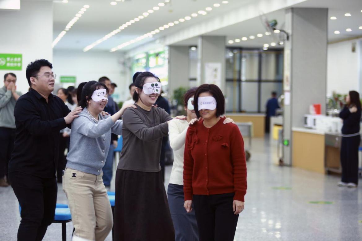 随后,“蒙眼吃香蕉”、“太空漫步”、“蒙眼过河”、“耳疾手快”等互动游戏轮番登场。老师们纷纷投身其中,个个热情饱满、活力十足,爽朗的笑声、欢快的呐喊此起彼伏,整个会场暖意融融、热闹非凡。这场趣味横生的游戏环节,一举将现场氛围推向沸腾高潮,不仅有效锤炼了团队协作意识与奋勇争先的昂扬斗志,更勾勒出轻松愉悦、温馨和谐的共事图景。大家在你来我往的互动中褪去工作辛劳,在并肩协作中凝聚同心合力,深厚情谊在欢声笑语中愈发醇厚。