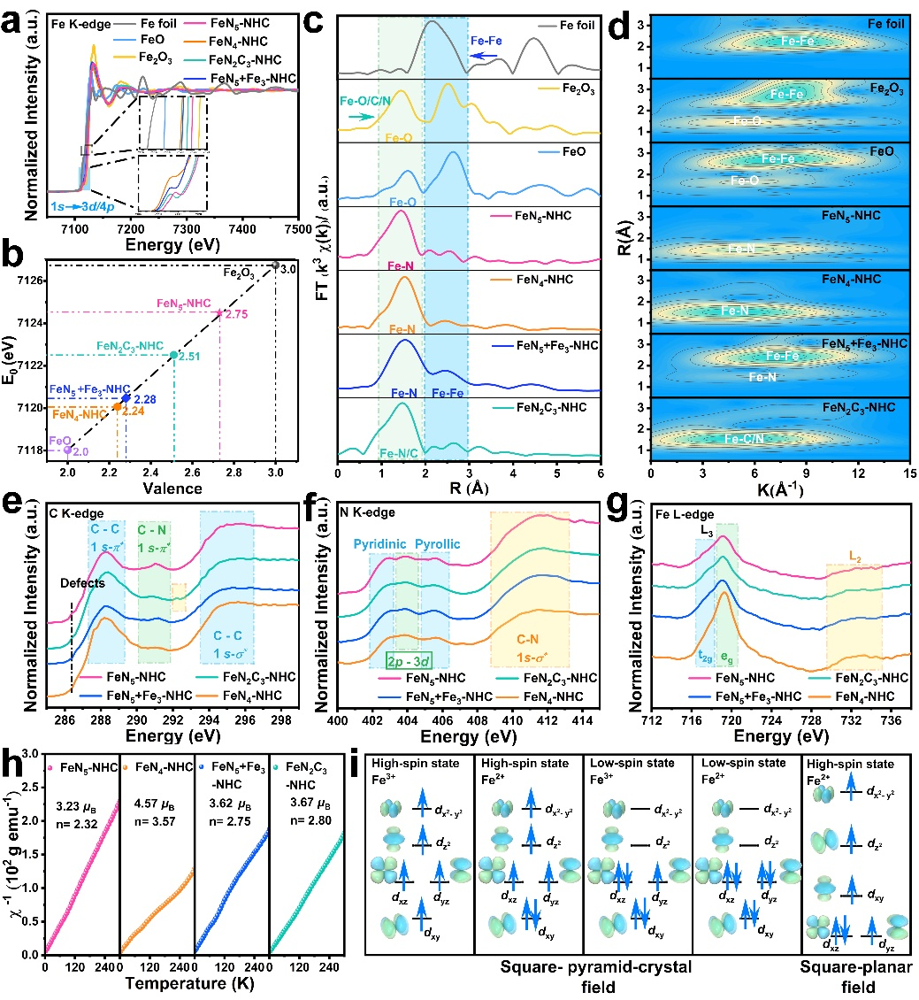 图2. 原子分散的Fe催化剂的电子自旋极化与配位结构表征