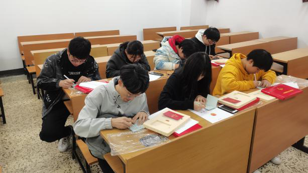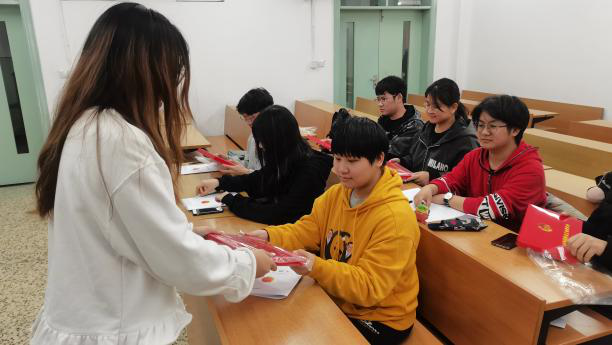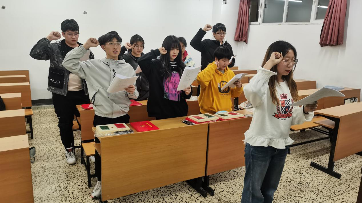 首先,李熠宣读了新团员名单,并对正式加入中国共产主义青年团的新团员表示祝贺。随后,她宣读了《中国共产主义青年团章程》中有关团员义务和权利的规定,并为团员们发放了团员证、团徽及团章。在她的带领下,新团员们面向团旗庄严宣誓,从同学们炯炯有神的眼中,感受到了内心的激动与喜悦,表现了其发自内心对团组织的尊敬与拥护。