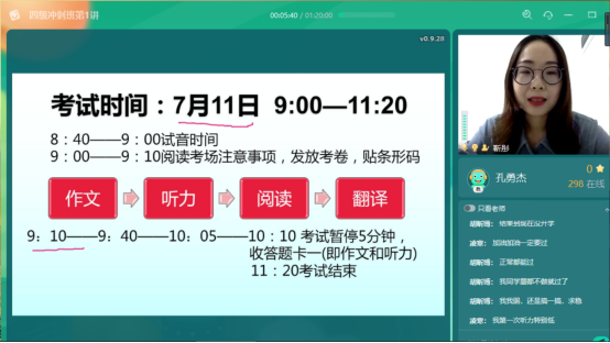 四级课程伊始,靳彤老师首先向同学们介绍了四级考试时间、相关流程和注意事项,并说明听力在四级考试中所占的比重。紧接着,老师向同学们分析了不同英语听力水平对应的现状与困境,并有针对性的讲解了提高英语听力的方法和技巧。随后靳老师讲到,最后一个月的复习冲刺过程中,词汇量的积累固然重要,但有效地运用解题方法与技巧快速提高英语听力更加重要。最后,靳彤老师结合同学们做题中遇到的问题,进行了针对性的训练,同时总结出如何依靠单词进行定位、在两个犹豫不决的选项中如何做出最佳选择等答题技巧。