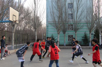 下午3时,半决赛同时开打,场边的啦啦队喊得十分响亮,而场上的球员们也拼劲全力,经过一整场的比拼,18高分子材料与18材料化学分别战胜了各自对手,挺进了决赛。