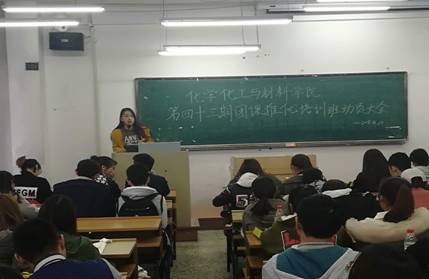 会议伊始,团委员工副书记陈继暾简要介绍了本次团课推优动员大会的目的,他提到,本次团课推优具有增强团员进步意识和责任观念、提高自我修养、促进团组织发展等重要意义,并且强调了学院老师对此次团课推优的重视,大会由此拉开序幕。随后,他向大家介绍了此次团课推优的组成部分,并着重地向同学们说明了理论课学习方式和社会实践形式。在讲话中,他提醒同学们,要珍惜现在身边的学习机会,并且应当在学习和生活中发挥共青团员的模范带头作用,为班级内的同学做好成绩、工作等多方面的榜样。