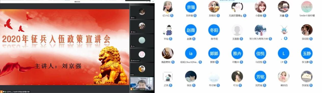 为加大征兵宣传教育力度,让同学们了解国家最新征兵入伍政策,鼓励同学们到军营中磨练自我,永利3044noc于2020年5月21日下午通过腾讯会议召开2020年征兵入伍政策宣讲会。本次会议由永利3044noc团委副书记刘京强老师主讲,全院有参军意愿的员工参加会议。