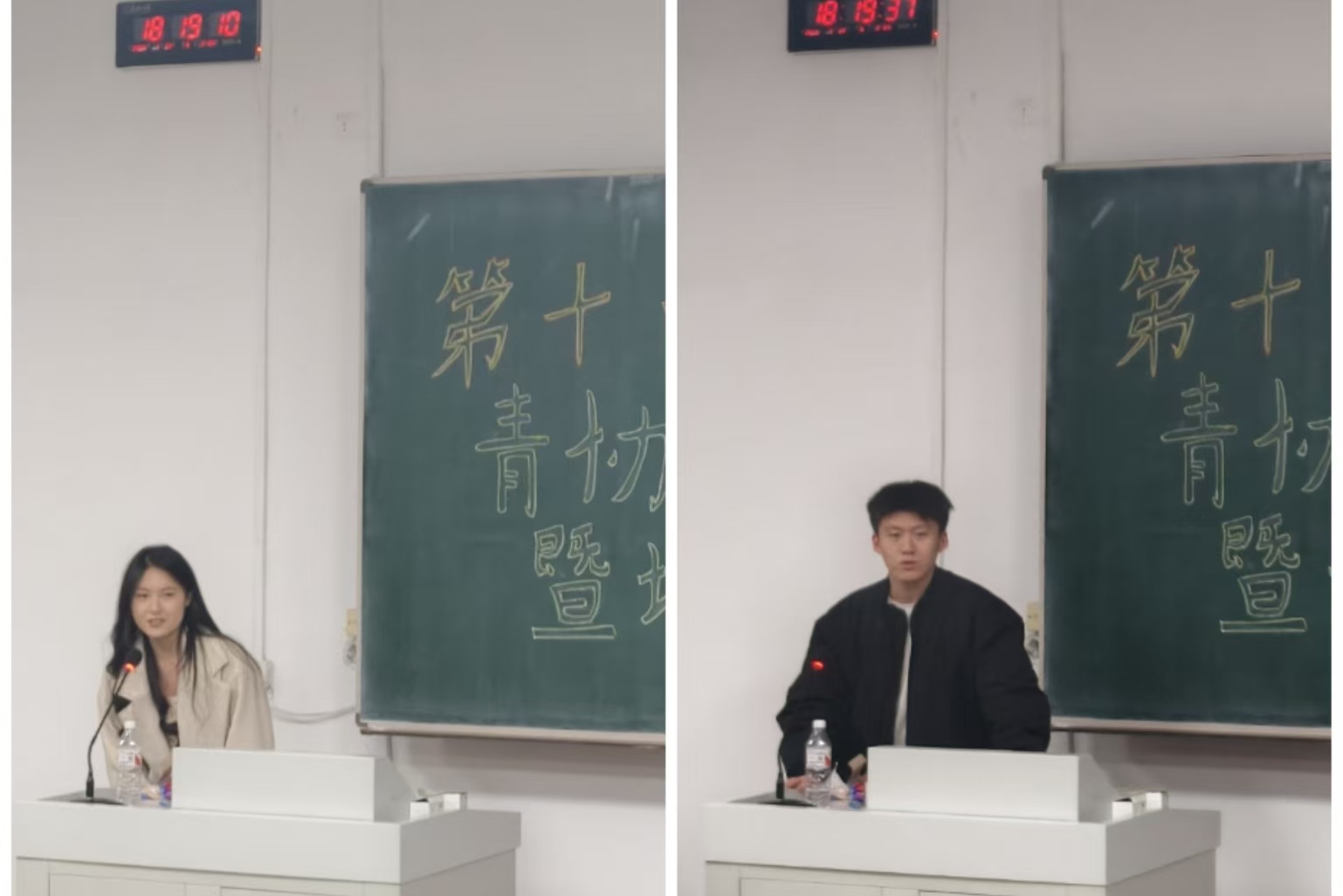 接下来,各部门部长与副部长依次上台,分享他们的经验与见解。发言结束后,便迎来了新干事亮相环节。新任干事们依次走到黑板前,签下自己的名字后,进行自我介绍,尽管起初彼此并不熟络,但提及对志愿活动的向往时,每个人眼中都闪烁着光芒。