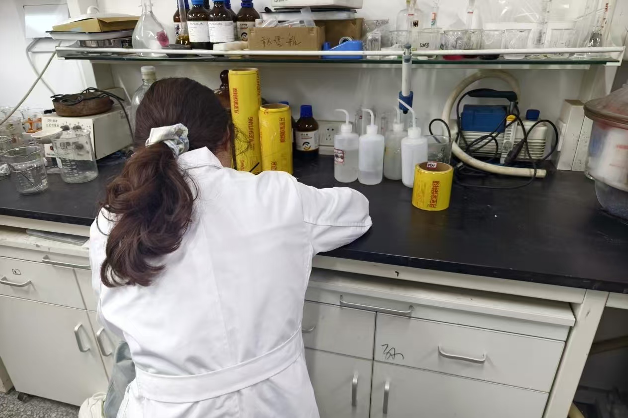 照片里,师姐专注于实验仪器,桌上摆放着各种试剂和实验设备。在无机化学的微观世界里,在化学领域的前沿探索中,他们像一群无畏的勇士,不断尝试新的实验方法,探索未知的领域。每一次的实验操作,都是对知识的深入挖掘;每一组数据的记录,都是他们成长的见证。