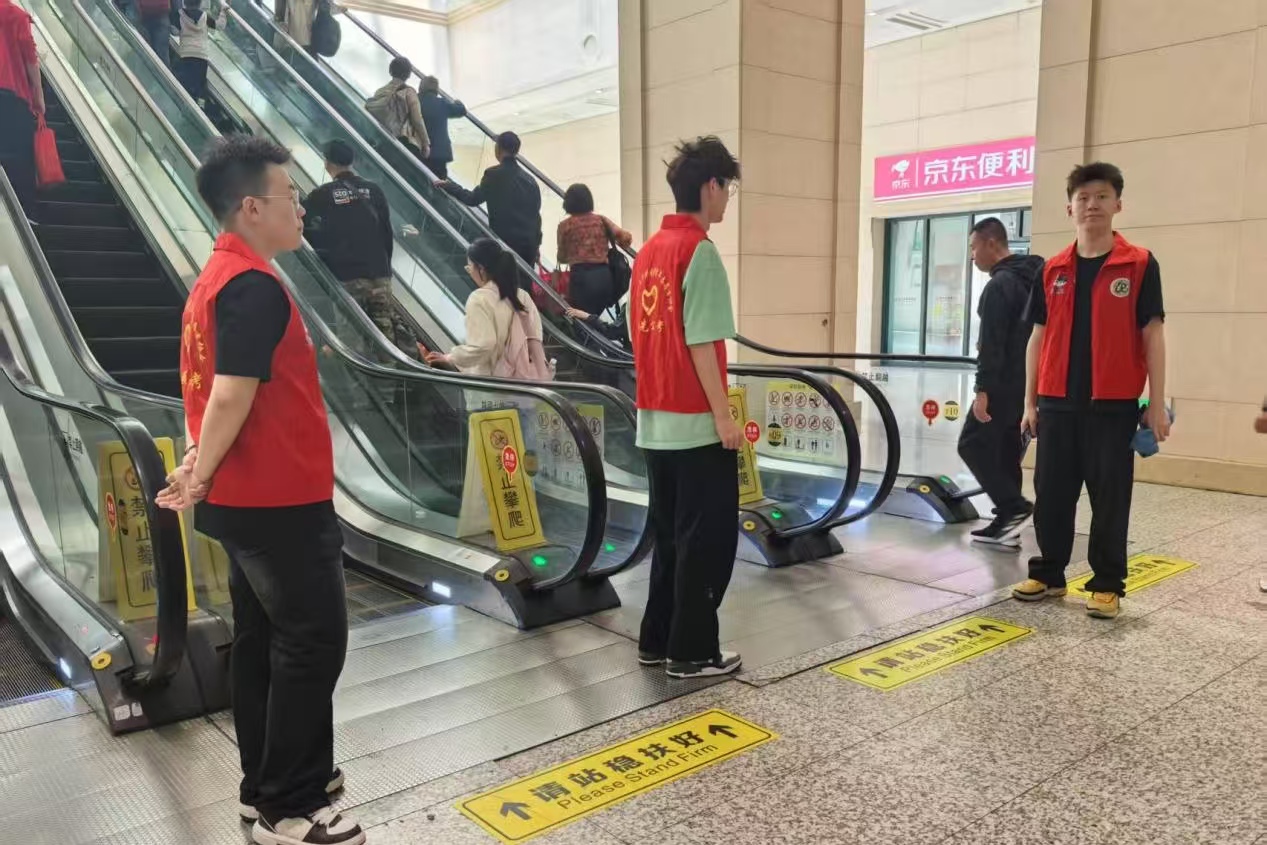 志愿者们活跃在哈尔滨站的各个点位,站前广场上,他们是“方向指引员”,迎着炎炎夏日,为拖着沉重行李的旅客指明进站入口、公交站点,避免旅客在炎热中徘徊;存包服务处,他们化作“安全卫士”,仔细核对寄存信息,耐心解答取件流程,妥善保管旅客的贵重物品;站台列车旁,他们变作“登车助手”,一边提醒旅客注意脚下安全,一边协助乘务员有序疏导人流,确保每一位旅客都能顺利踏上旅程 。