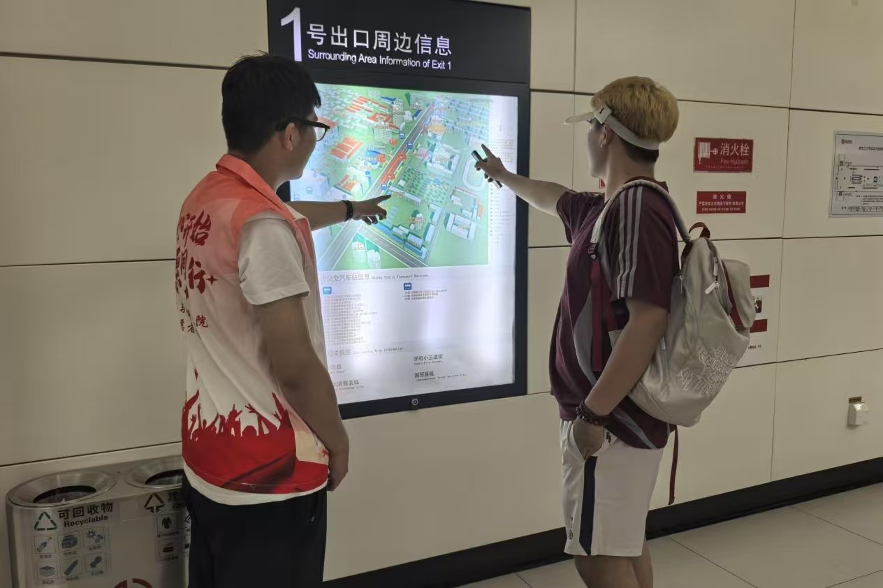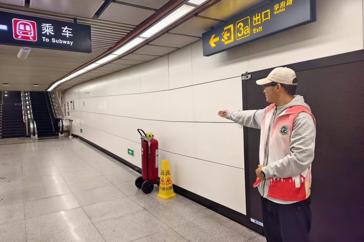 活动期间,即便地铁高峰期已过,志愿者们的服务热忱依旧炽热。他们随即协助工作人员清理站台垃圾,认真排查站内设施是否存在安全隐患。不时有乘客前来询问末班车时间、附近的交通枢纽位置。志愿者们立刻化作“地铁活地图”,细致说明线路衔接与周边交通接驳方式,全力为乘客的出行提供便利。