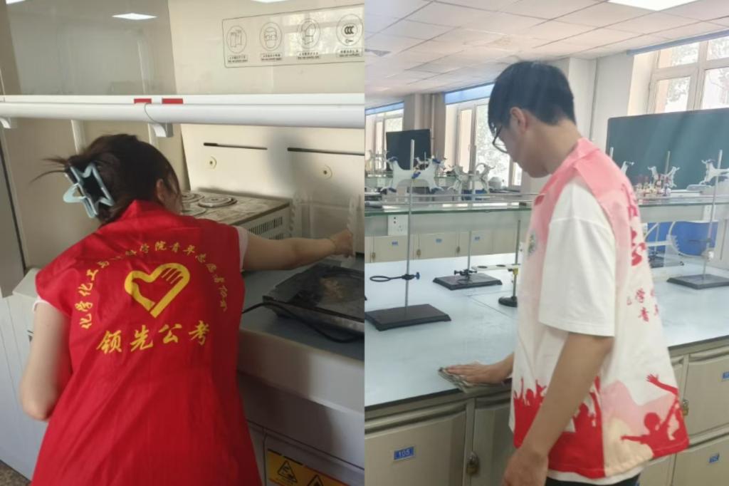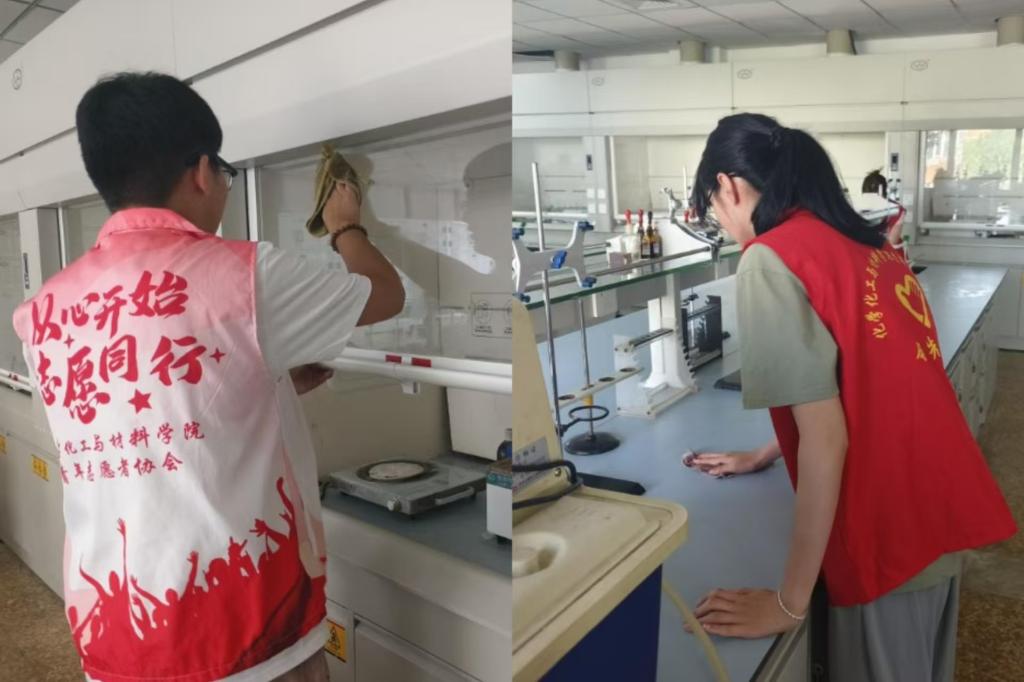 除了基础清洁,志愿者们还检查了实验室安全隐患,挑选破损仪器,检查仪器是否能正常工作,为师生创造更加安全便利的实验条件。通过实际行动,展现了青年学子服务师生的责任担当。
