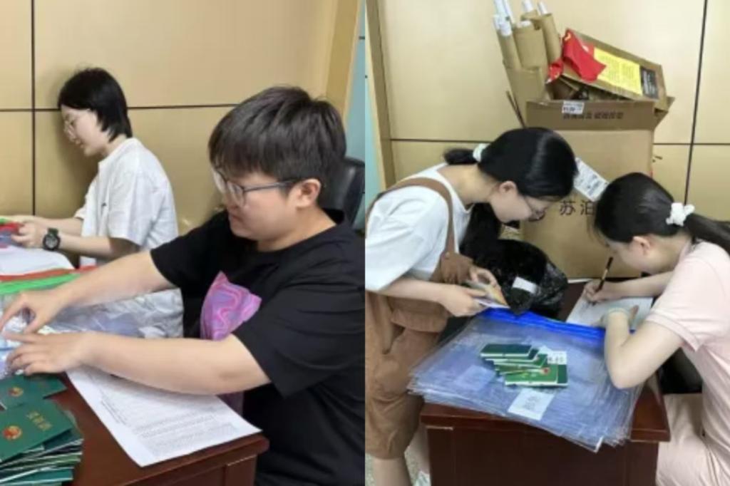 随后,志愿者们逐份检查毕业生团员证件,仔细查看入团时间、团员证编号等关键内容;同时,对四六级成绩单与证书进行反复核验,对比姓名、身份证号、考试时间等信息,确保与档案记录完全一致。他们用耐心与细心,为毕业生档案的准确性和完整性保驾护航。