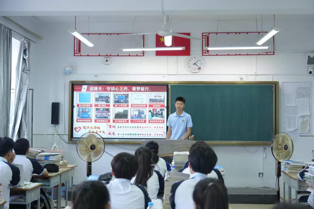 为彰显校园志愿实践风采,提升学校感染力与号召力,实践队队员王庆茁为同学们分享大学志愿服务经历。他从校园志愿活动到社会实践活动;从组织图书捐赠到陪伴孤寡老人展开详细介绍,展现黑大化院学子的榜样力量。并鼓励同学们以志愿之名践行责任,以奉献之实拓展青春价值。通过此次分享,同学们对老员工志愿服务活动有了更全面的认知,纷纷表示愿投身志愿浪潮,以微光之行绘就青春担当,让志愿精神在奉献中熠熠生辉。