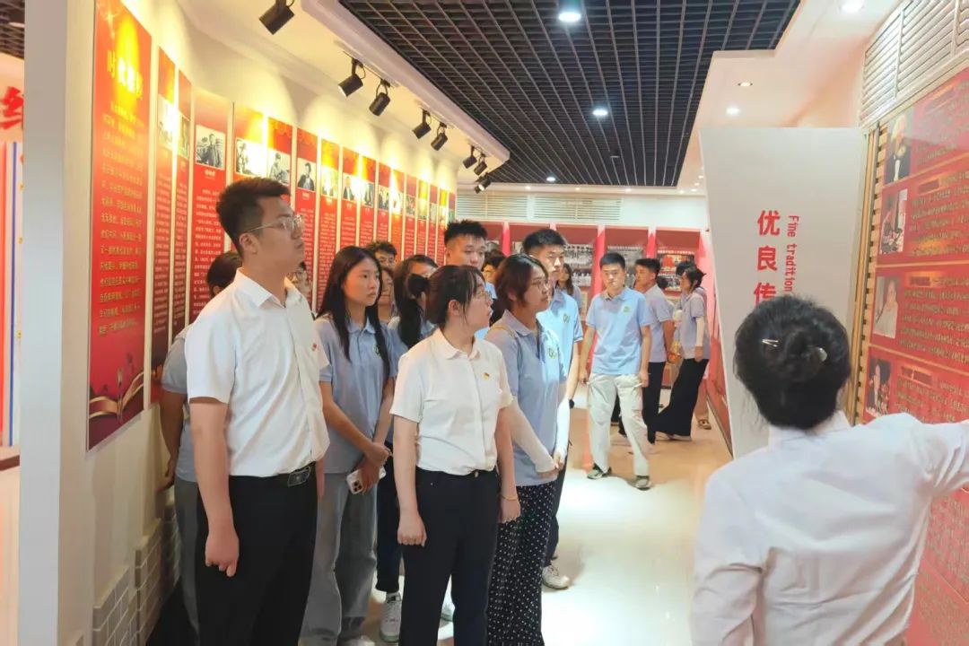 首先,实践队员们参观了红色教育基地,实地感悟党建“红色力量”。在讲解员的带领下,实践队员们认真观看记录党的发展历程的每一块展板,用心聆听展现党与人民血脉相连的每一个鲜活故事,深入感受革命先辈们的奋斗历程和崇高精神。通过此次在红色教育基地重温党史,实践队员们更加深刻体会到了中国共产党带领人民取得革命胜利的艰辛与不易,也进一步坚定了以实际行动践行初心使命的信念。