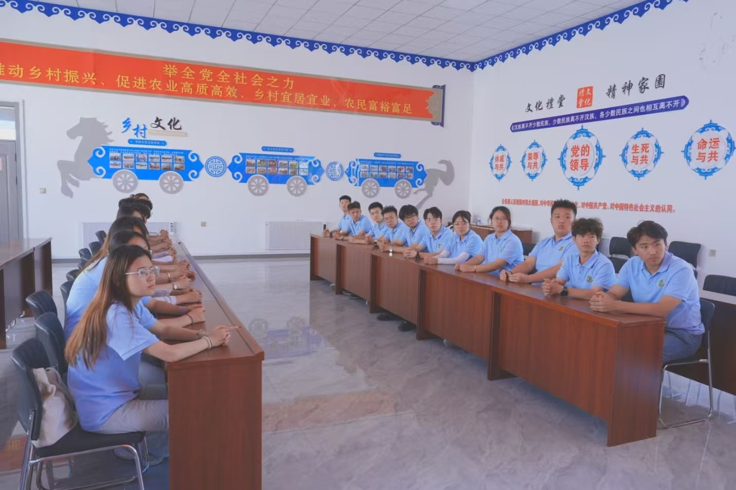 会上,首先,巴彦查干乡村委会刘主任对实践队的到来表示热烈欢迎。刘主任详细介绍了巴彦查干乡从抗洪重建到乡村振兴的奋进历程,特别强调了在这片土地上生生不息的民族文化传承以及代代相传的坚韧品格,共同构筑了这片土地独特的精神底色。他期待实践队员们能够深入田间地头,在参与乡村建设的实践中触摸文化的脉搏,在服务基层的过程中汲取成长的养分,让青春智慧与乡土文化碰撞出创新的火花,共同书写新时代乡村振兴的动人篇章。刘主任表示,相信通过这次实践,实践队员们必将收获对乡村发展的深刻理解,而这片土地也将因青年力量的注入焕发新的生机。