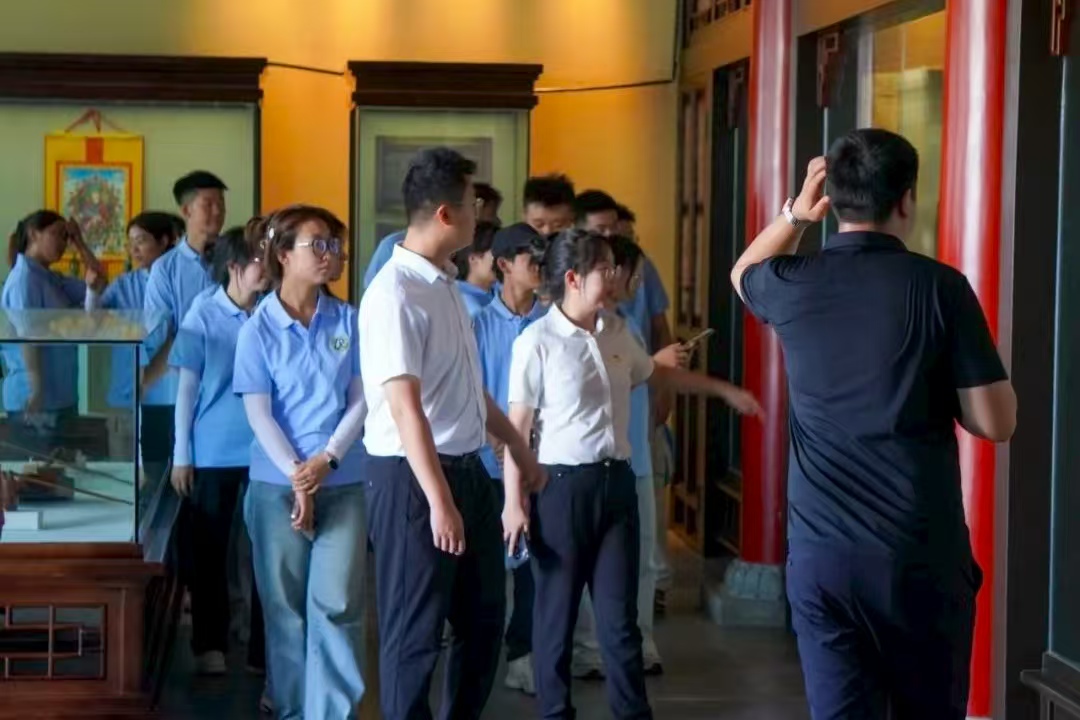 实践队员们来到杜尔伯特王府民俗博物馆参观,在这座承载着深厚文化底蕴的府邸中开启了一场文化之旅。从展现“马背民族”日常生活的场景,到复原蒙古族王爷起居、公务与饮食的空间,再到聚焦民族文化传承与历史脉络的多元展区,每一部分都生动展现了蒙古族的文化脉络。每一件文物都是历史的注脚,每一处陈设都是文明的见证,实践队员们在此不仅探寻到民族文化的深厚根脉,更坚定了新时代青年守护文脉、赓续薪火的信念。
