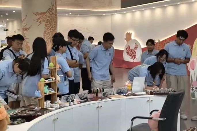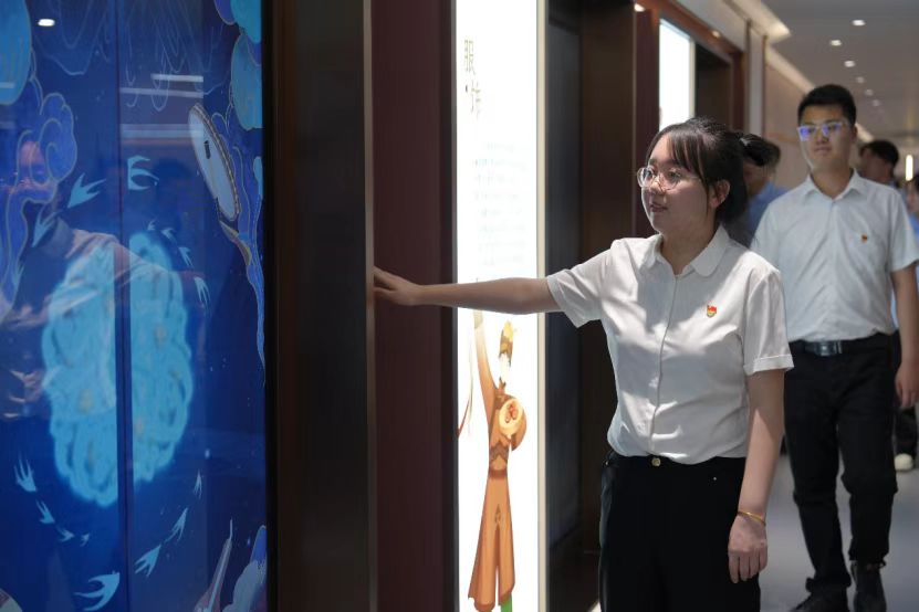 馆区共分为“同心向党”、“同书画卷”、“同展风采”、“同创未来”4个展厅分别讲述了不同民族的发展历程,从达斡尔族的传统渔猎文化到与汉族农耕文明的互补共生;从共护家国的爱国精神到新时代乡村振兴的团结协作。队员们跟随讲解员的脚步,认真聆听,深入了解中华民族交往交流交融的历史脉络和新时代民族团结进步事业的辉煌成就,深刻体会中华民族共同体意识的历史根基和现实意义。
