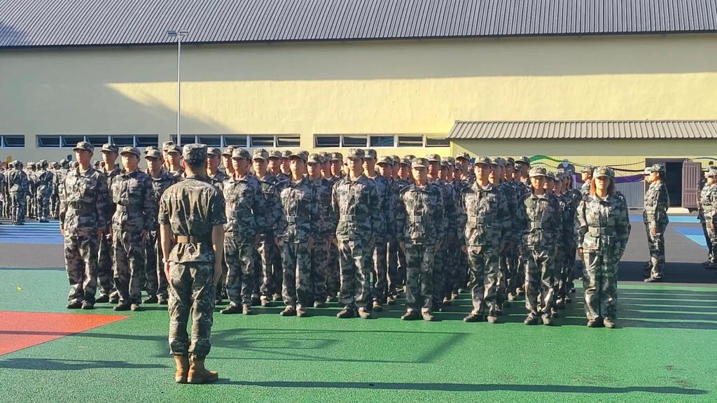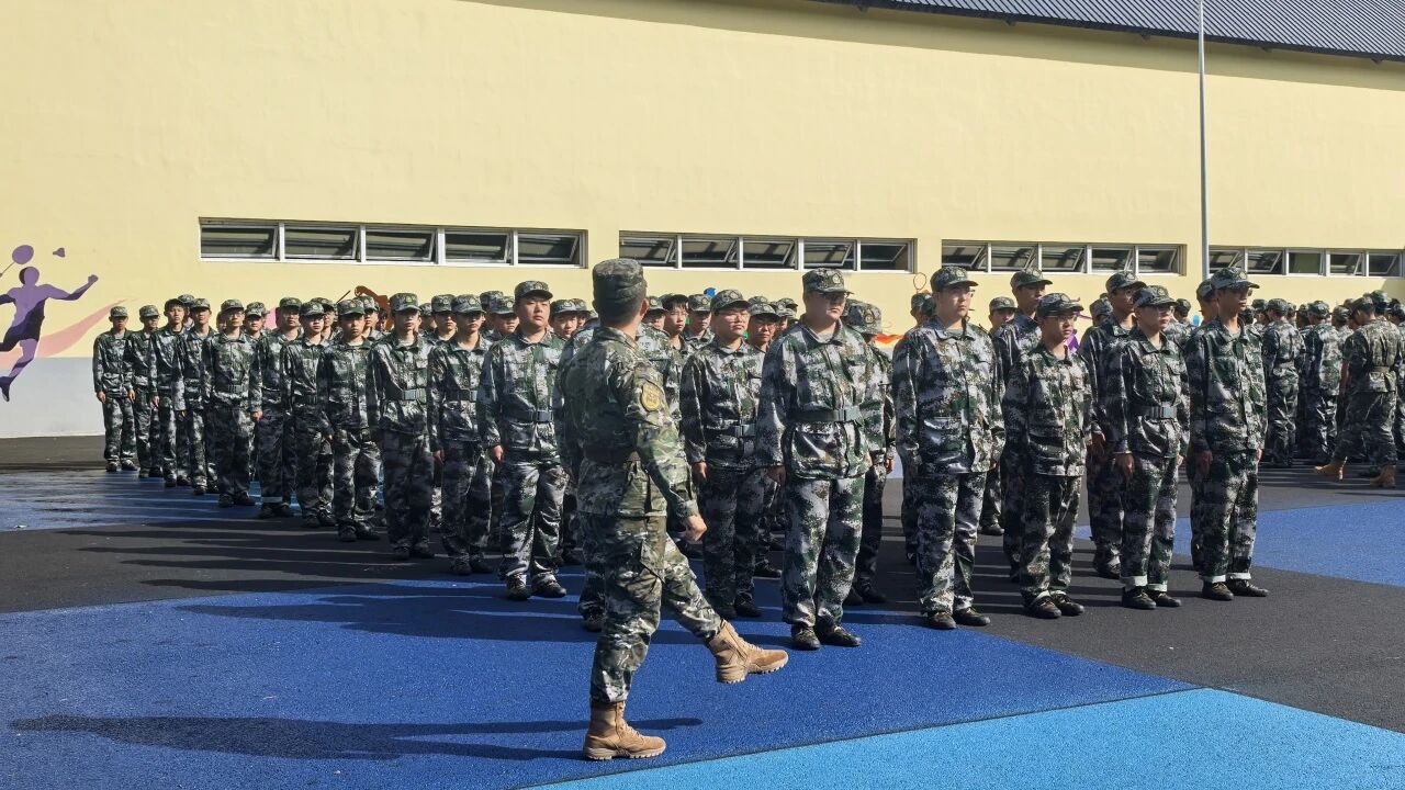 训练场上,各军训方队以严整的军容、规范的动作和嘹亮的口号,展现出高度的纪律性与团队协作精神。学员们步伐稳健、行动一致,在反复练习中不断突破自我,用实际行动诠释了新时代青年坚韧不拔、奋发向上的精神风貌。