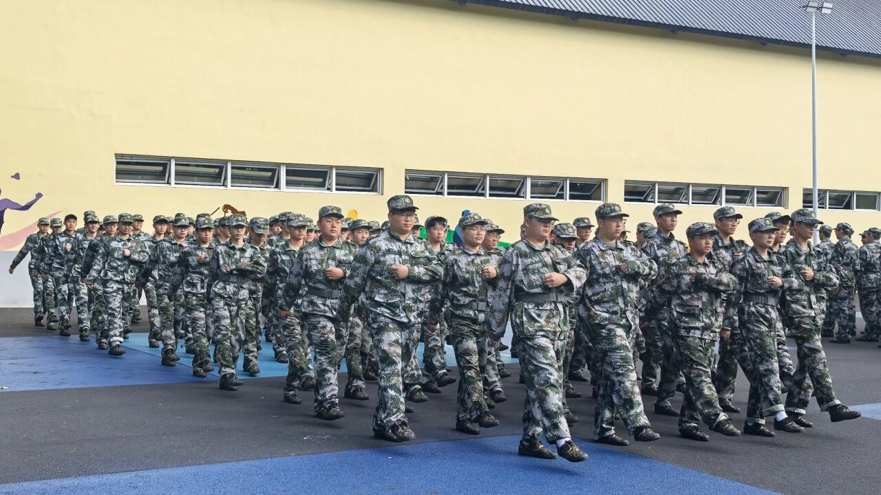 烈日当空,戎装整齐。军训学员们身着统一的迷彩服,目光坚毅、精神抖擞,以严整的列队展现青春气势。队列中,队员们步伐铿锵、掷地有声,嘹亮的口号响彻训练场,动作整齐划一、协调一致,充分展现了新时代青年昂扬向上的精神风貌和过硬的综合素养。