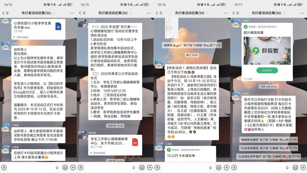 当秋日的暖阳洒在校园的林荫道上,一场关于身心健康的行动正悄然进行。自“先行者——心理健康校园行”活动启动以来,化学学子们踊跃参与,将“五育并举,强健身心”的理念融入日常,用日复一日的行动,为青春注入“心”能量。
