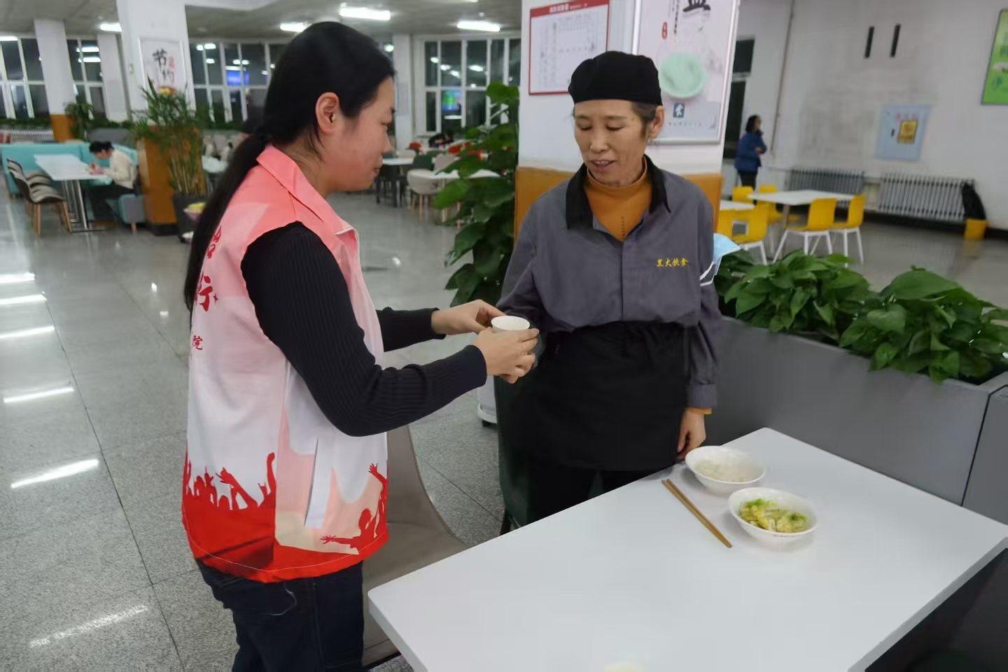 一杯暖茶递温情,一声问候传敬意。这杯热气腾腾的茶饮恰似寒冬里的炉火,驱散了食堂工作人员周身的凉意。在此次志愿服务中,同学们真切体会到平凡坚守的重量,用小小的善举搭建起师生与后勤人员的沟通纽带,奏响了校园温情的乐章。展望未来,公司青年志愿者团队会始终秉持“奉献、友爱、互助、进步”的志愿精神,把这份关怀持续传递给校园里的每一位劳动者,为打造充满暖意的校园氛围,不断前行、笃定实干。(永利3044noc供稿)